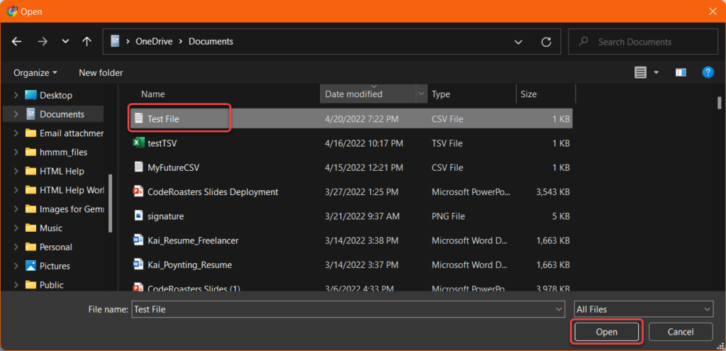 Note: For Mac Users, it is roughly similar. Go to File, and click Import. A Choose a File dialog box will open, and you can select the file and click Get Data.