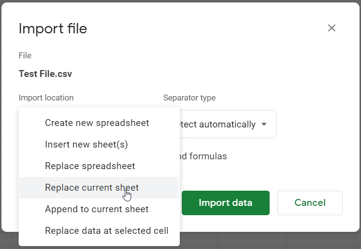 There are two possibilities when it comes to CSV on Google Sheets: Open and Import.